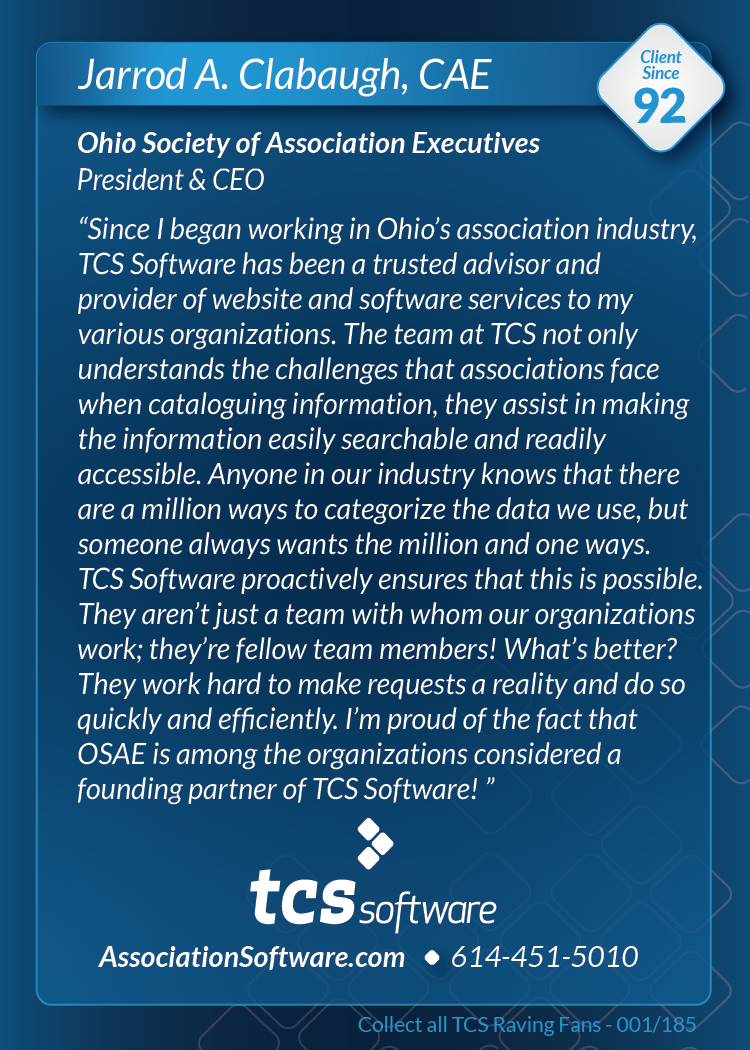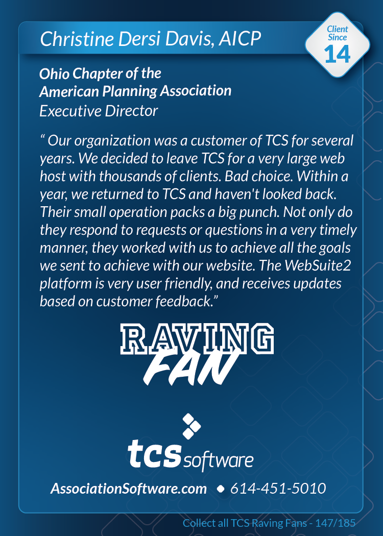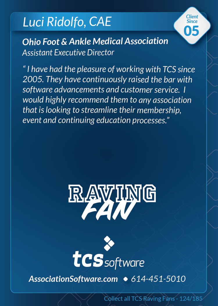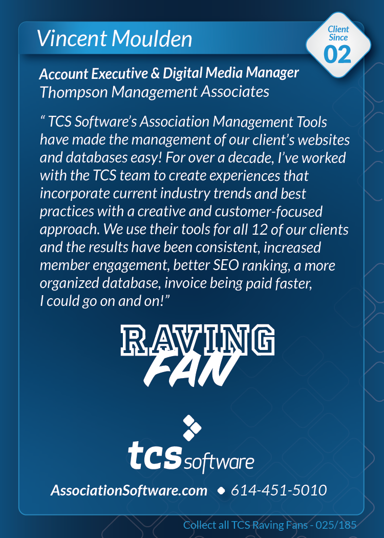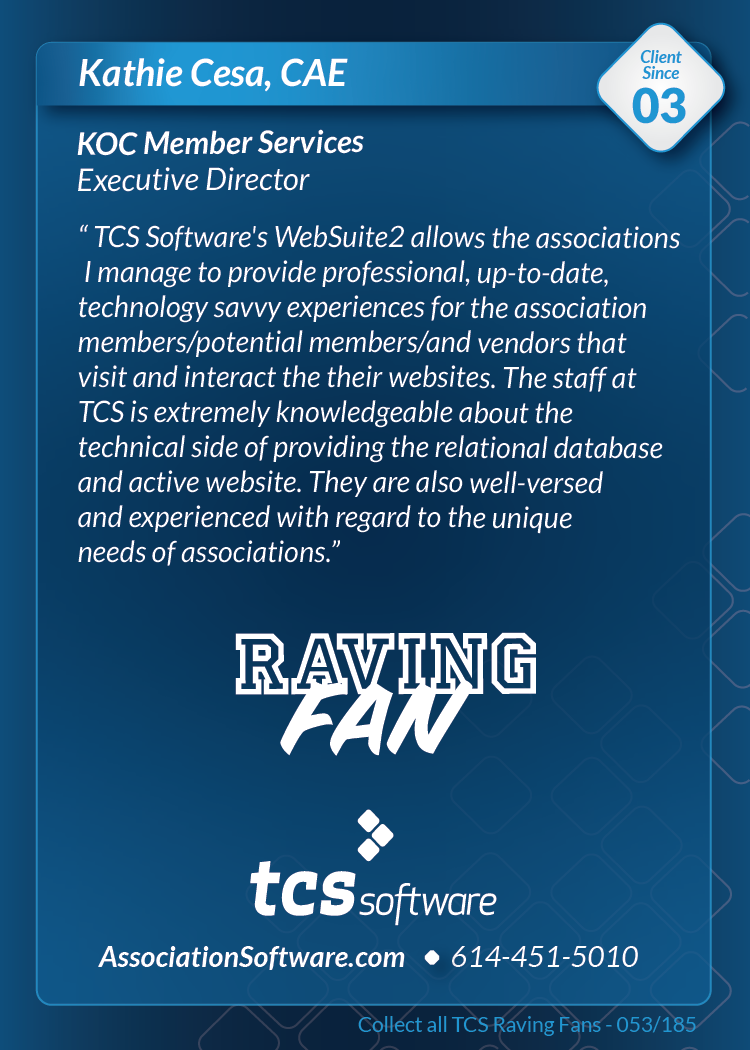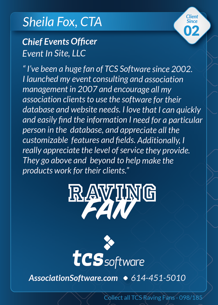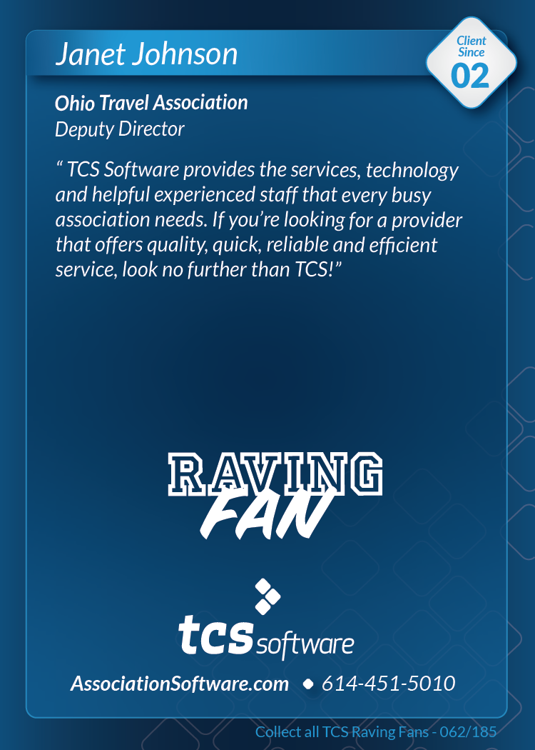 Thank you to everyone who visited us at ASAE'19 in Columbus, August 10-13th and picked up the series 1 pack of TCS Raving Fan cards. Want a pack? Call or email us and we'll be happy to send you one.